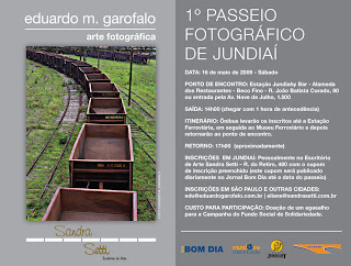 1º Passeio Fotográfico de Jundiaí - 16 de maio. Maiores informações: Escritório de Arte Sandra Setti: Rua do Retiro, 480.
